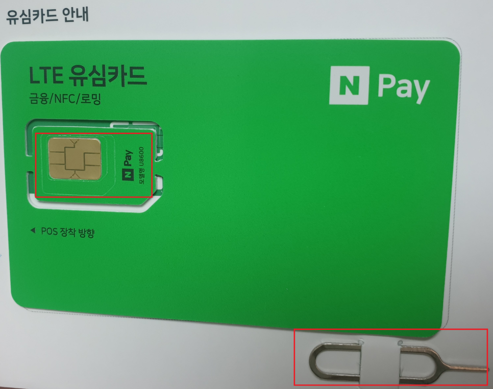 5. 유심카드 아래에 있는 핀으로 휴대폰 안에 내장되어 있는 유심을 꺼냅니다.