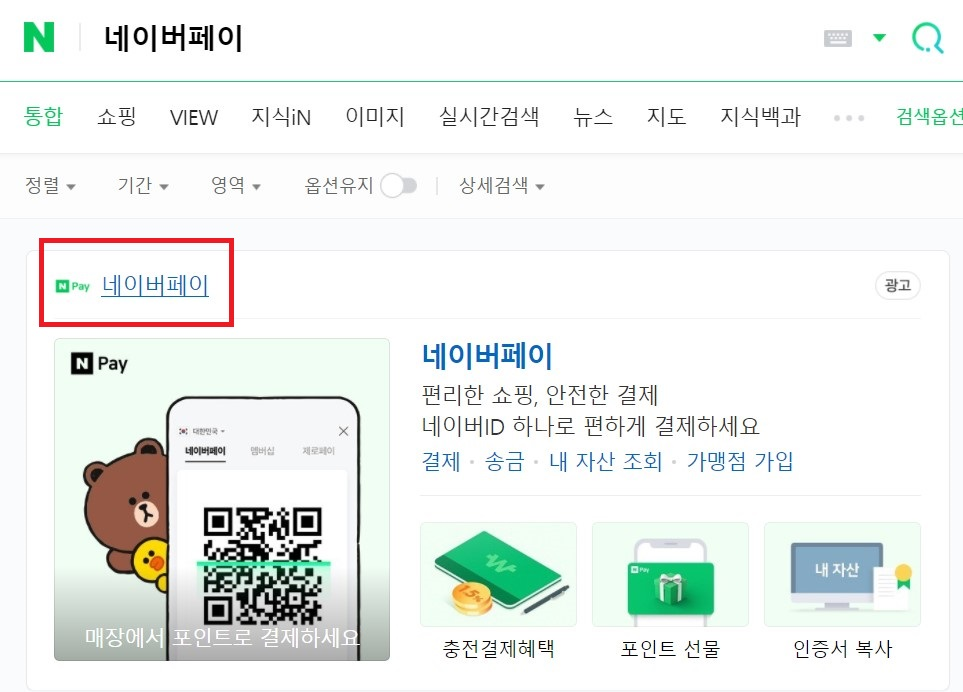 1. 인터넷 포털사이트에서 네이버페이를 검색합니다.
