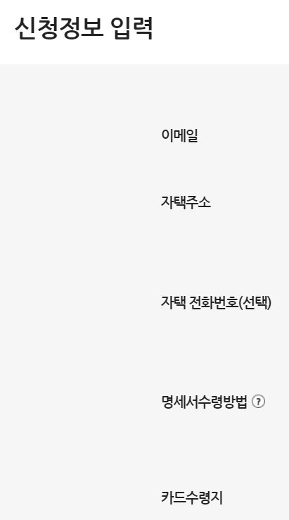 11. 이메일, 주소, 카드 수령지, 신분증 정보 등의 신청정보 입력 후 다음을 클릭합니다.