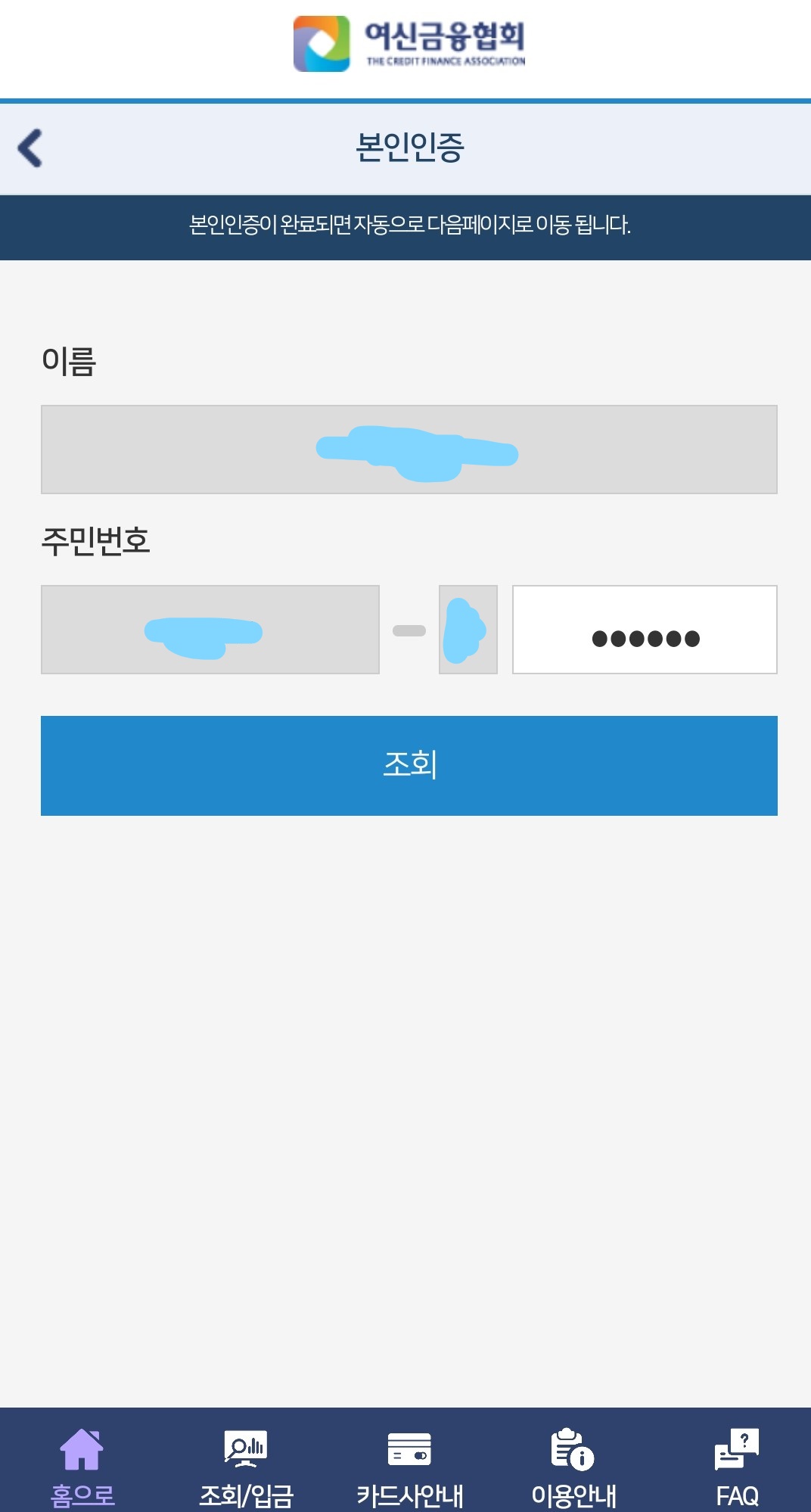 모바일 어플에서 카드포인트 통합조회 검색 후 여신금융협회 카드 포인트 조회/입금 설치