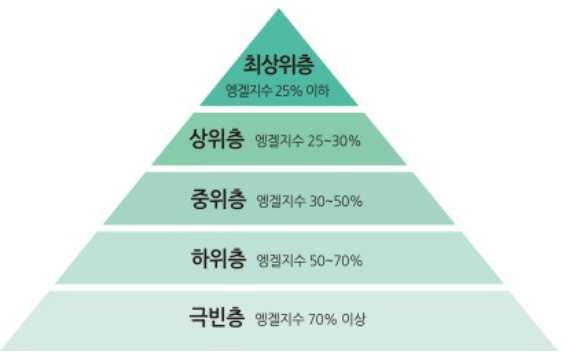 보통 엥겔지수가 0.5 이상이면 후진국, 0.3~0.5면 개발도상국, 0.3 이하이면 선진국이라고 합니다.