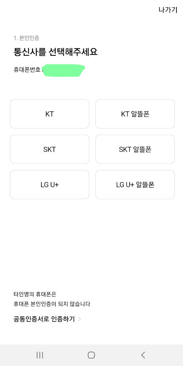7. 본인인증 동의에서 "필수항목 전체 동의"를 선택하고 "전체 동의하고 인증번호 받기"를 누릅니다.