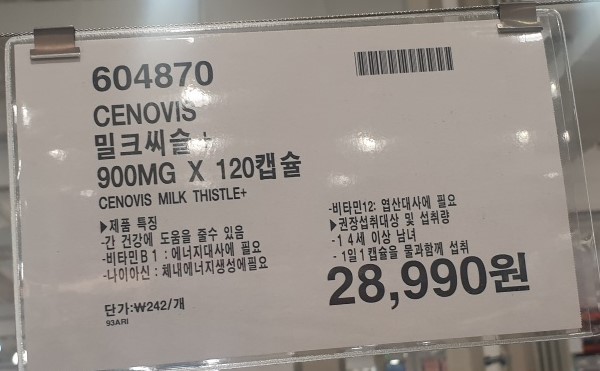 저는 추석 연휴 간 고생할 저의 간을 위해서 세노비스 밀크씨슬을 구입했습니다.